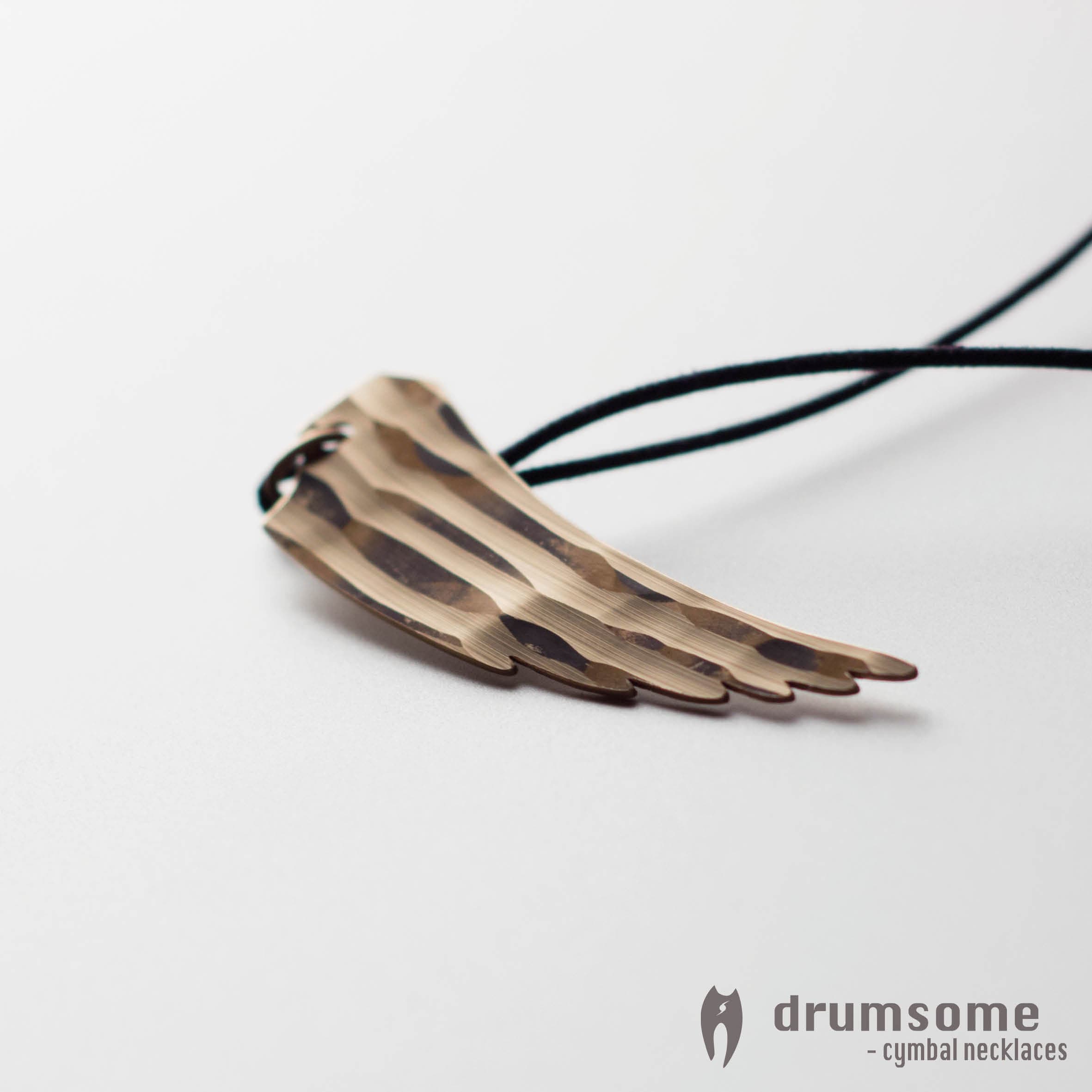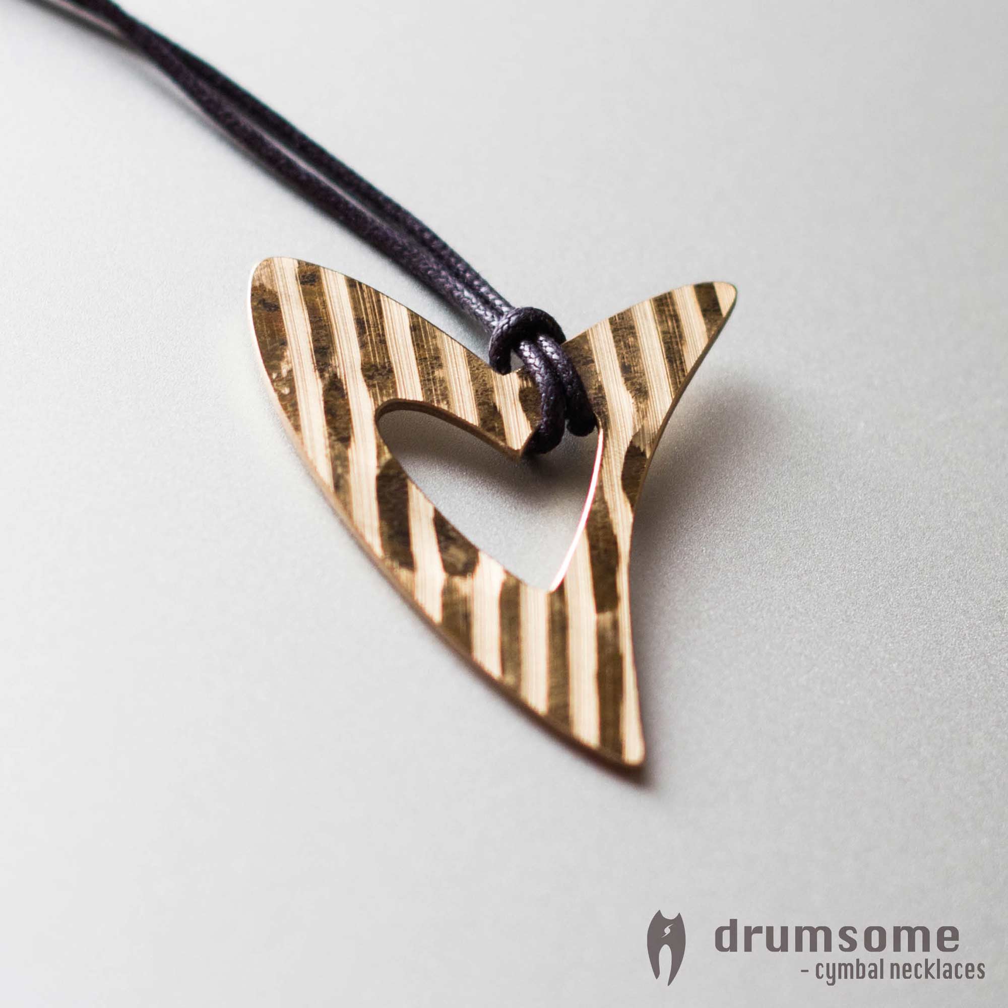 Drumsome-Halsketten werden aus recycelten Schlagzeugbecken hergestellt. Die Anhänger sind daher aus B20-Bronze. Die typische Drumsome-Struktur entsteht dabei durch das Drehen und Hämmern bei der Herstellung der Becken.